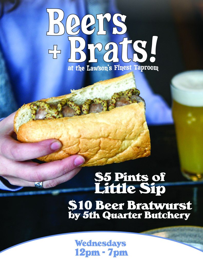 Join us for 5th Quarter Butchery Beer Brats and $5 pints of Little Sip IPA, all day long!