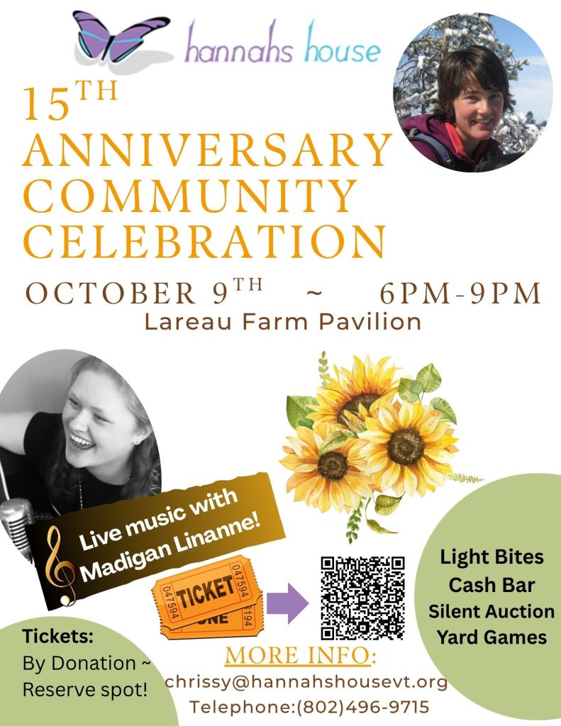 We’re throwing a party for the community to celebrate 15 years of Hannah’s House! It’s going to be a fun-filled evening for the whole family at the Lareau Farm Pavilion.