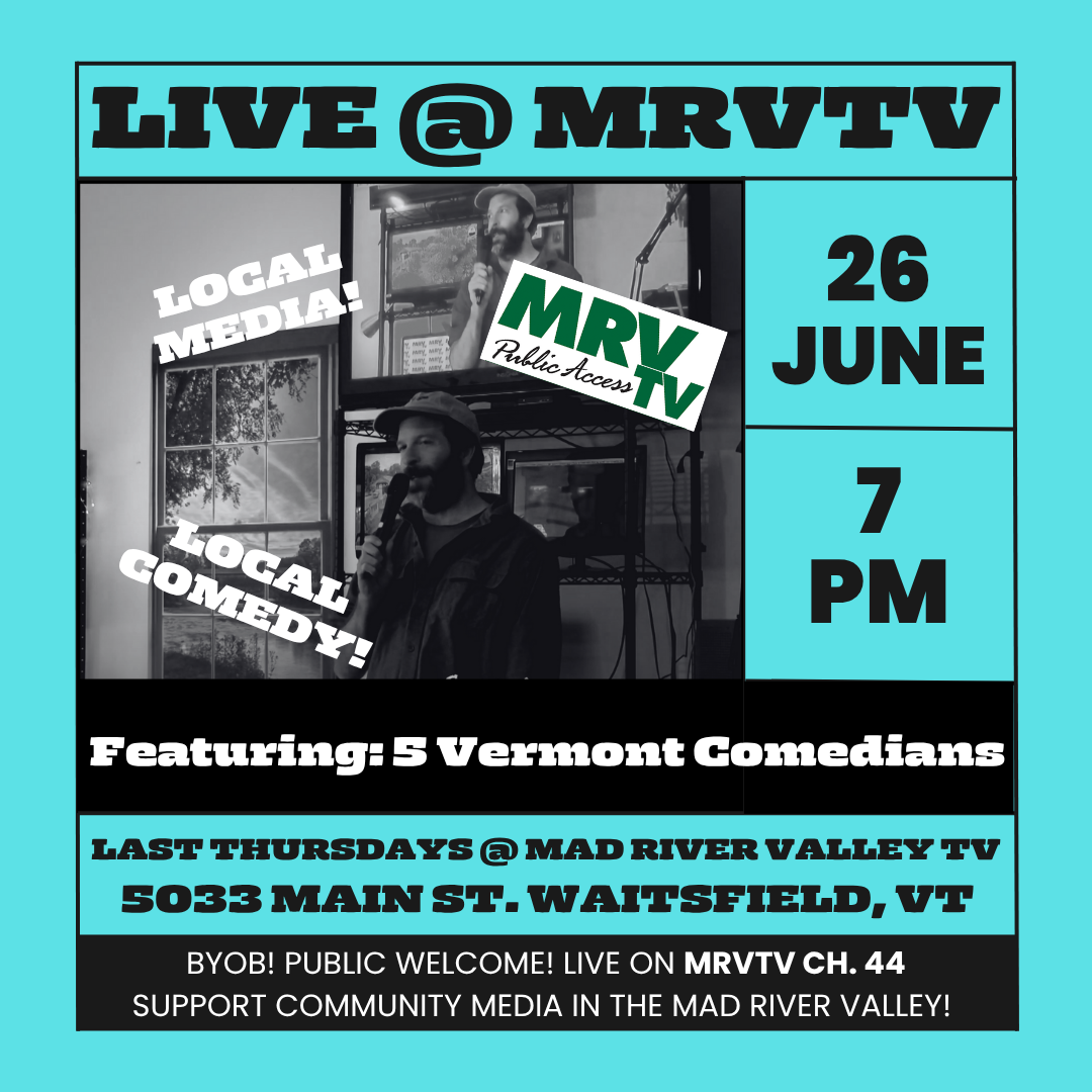 There’s nothing funny about Public Access TV… Join us for a special stand-up comedy edition of *LIVE @ MRVTV* with 5 Vermont based comedians!