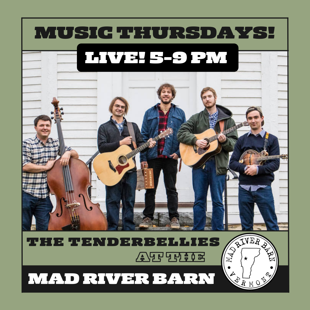 Mad River BarnJoin us in the pub for all your favorite Mad River Barn menu items with live music from Madigan Linnane! Open 5 pm – 9 pm. Live music every Wednesday in the winter!