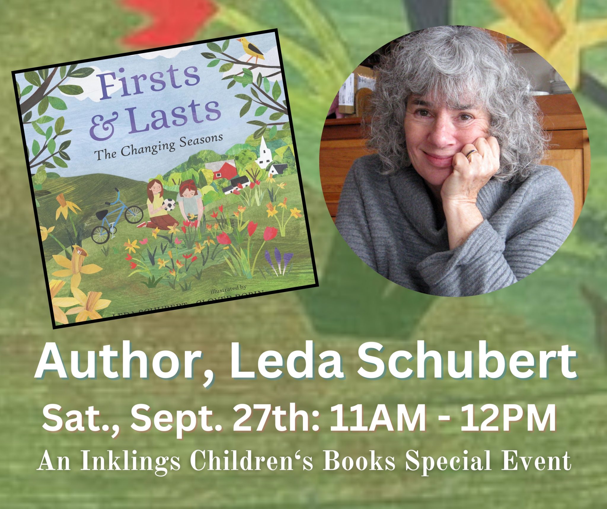 Inklings is excited to welcome author Leda Schubert on Saturday, September 27th at 11am for a reading of her book, FIRSTS & LASTS, THE CHANGING SEASONS. In this jubilant ode to seasonal rituals, Leda Schubert evokes the familiar, enchanting rhythm of the four seasons; each captured with evocative words and glorious cut-paper collages. Following the […]