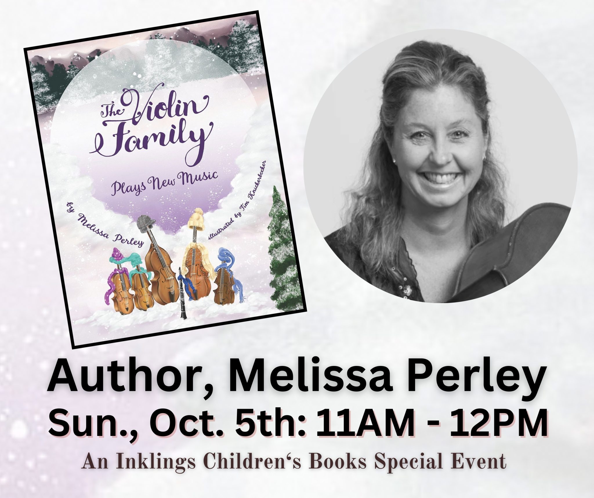 Join us Sunday, October 5th at 11am as Inklings welcomes author Melissa Perley for a reading of her book, THE VIOLIN FAMILY PLAYS NEW MUSIC. This delightful book is an important reminder to readers of the power of music to bring people together, following a friendship that harmonizes instruments from different families. Melissa Perley – […]