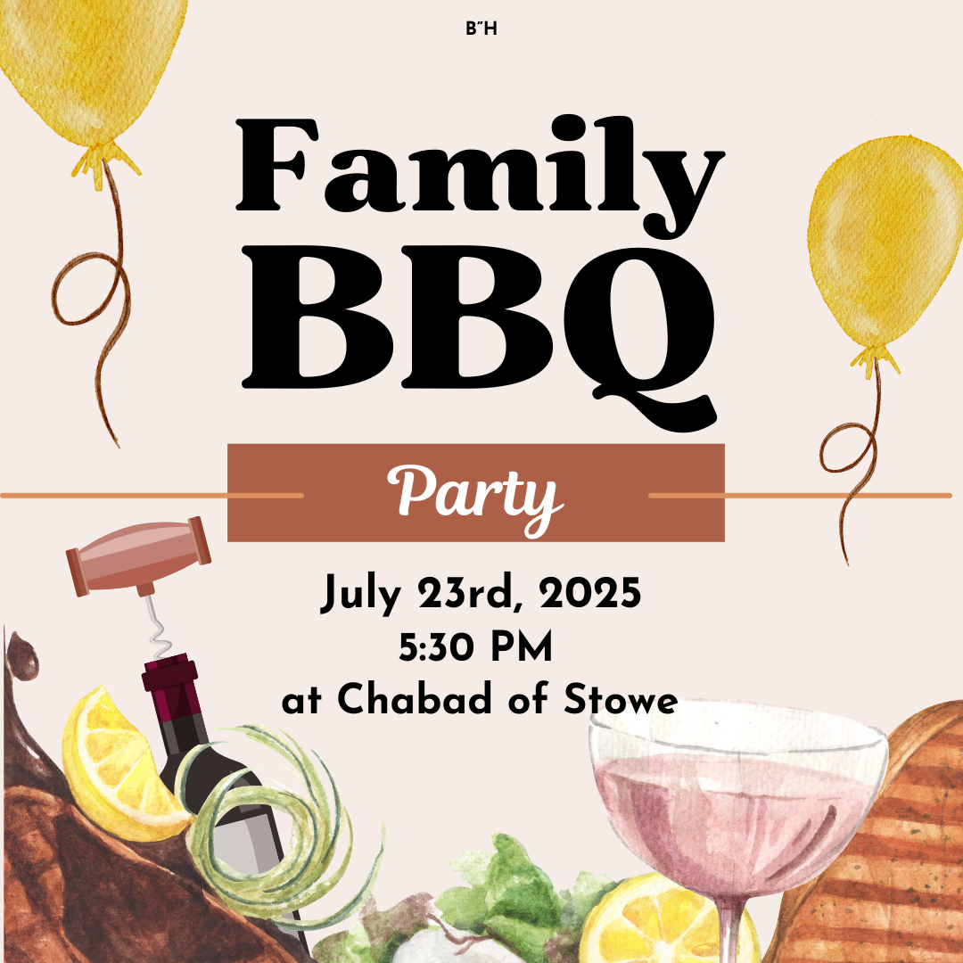 This coming Wednesday, join us for a backyard BBQ party that is fun for adults and kids alike, hosted by Chabad of Stowe-Waterbury. This is a community celebration full of sun, fun, and food. At 5:30 pm, join us for a delicious summer BBQ spread, games for the kids, smores, drinks, music, bubble fun, and […]
