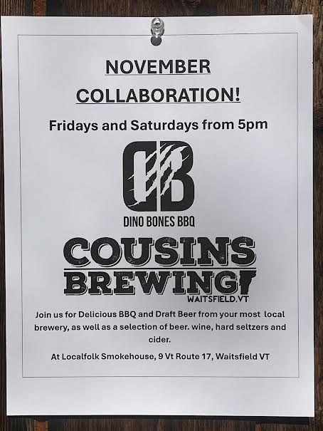Join Dino Bones and Cousins Brewing for delicious BBQ and Brews every Friday and Saturday in November.