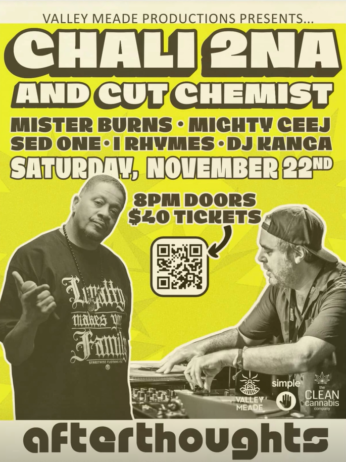 West Coast legends Chali2na and Cut Chemist make their debut at Afterthoughts on November 22, 2025. The two have remained friends since 1987 —from forming #unitycommittee, to #jurassic5, blending sounds with #ozamatli, and chasing solo projects that pushed the boundaries of hip-hop and beyond. It’s a 35 year old friendship that manifests into music and […]