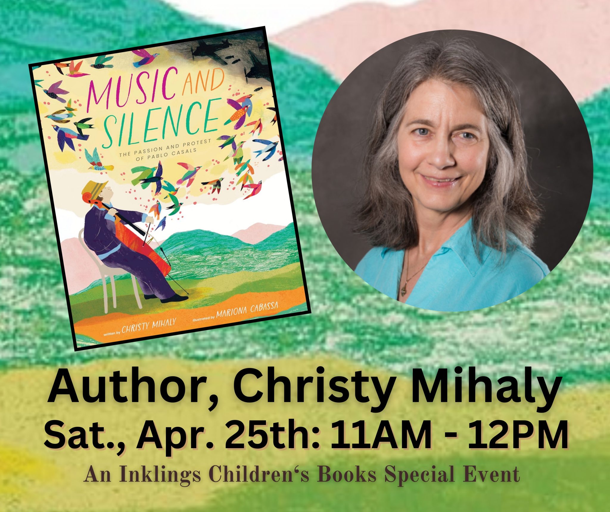 Inklings welcomes Vermont author Christy Mihaly on Apr. 25th at 11AM, for a reading of her brand new book, “Music and Silence: The Passion and Protest of Pablo Casals.” This inspiring picture book is a wonderful biography of Pablo Casals, a UN Peace Medal recipient who used his songs – and his silence – to […]