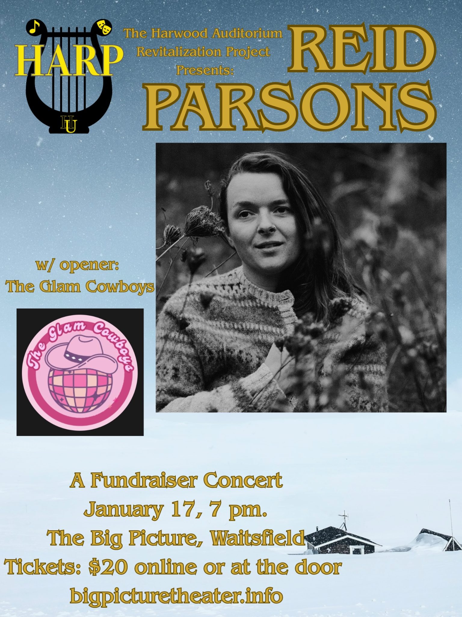 Jan 17 7:00 pm - 9:00 pm Harwood Auditorium Revitalization Project at the Big Picture; Featuring Reid Parsons
