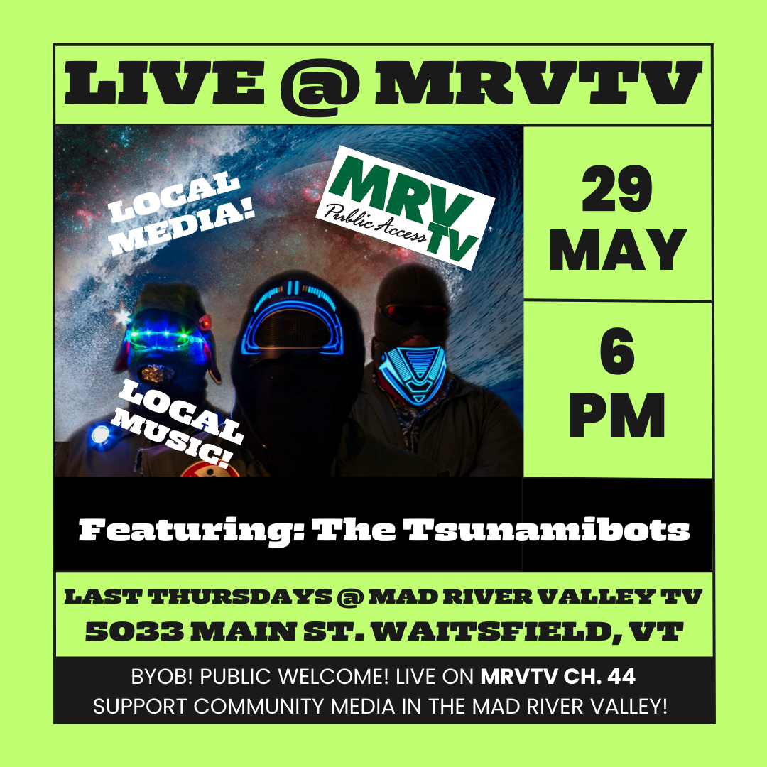 Mad River Valley Television 5031 Main St, Waitsfield, VT, United StatesLIVE @ MRVTV is back next Thursday with local musician Madigan Linnange! Join us Thursday, October 30th @ 6 PM at the Mad River Valley TV studio (5033 Main St. in Waitsfield) for the final LIVE @ MRVTV of the year! We will be broadcasting LIVE to local Channel 44! This event is free, BYOB, […]